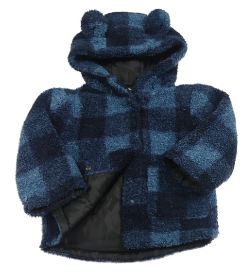 Tmavomodro-petrolejová kockovaná huňatá zateplená bunda s kapucňou Matalan