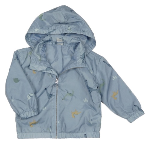 Modrošedá šušťáková jarná bunda s dinosaurami a kapucňou H&M