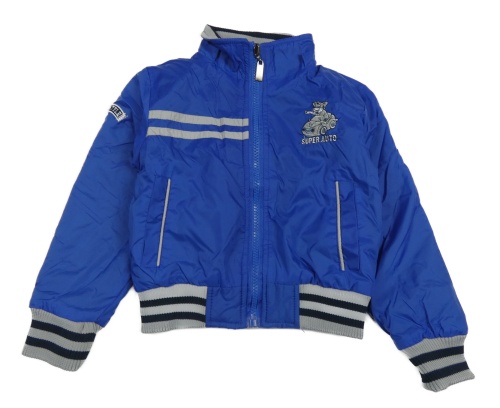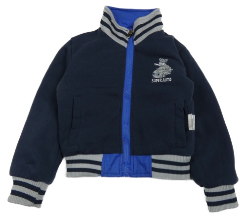 Modrá šušťáková jarná obojstranná bunda s autom