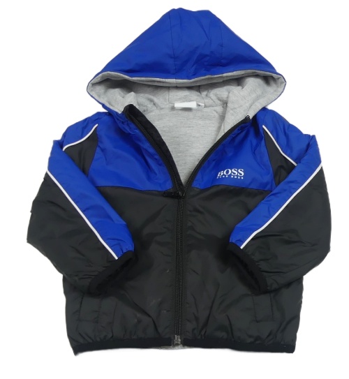 Čierno-kobaltově modrá šušťáková zateplená bunda s kapucňou Hugo Boss