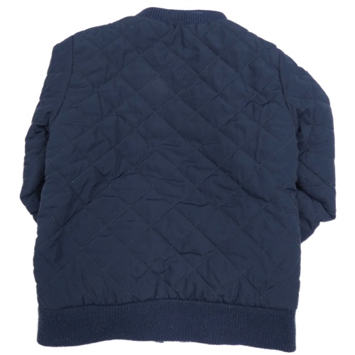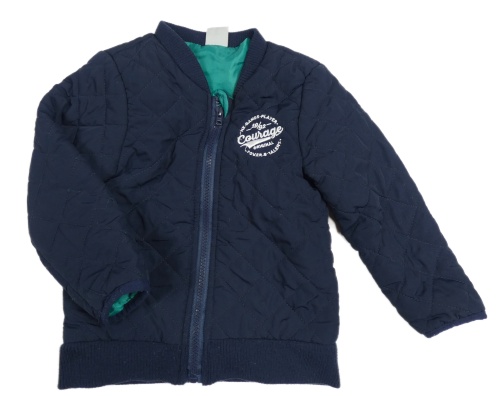 Tmavomodrá šušťáková prešívaná zateplená bunda s nápisom