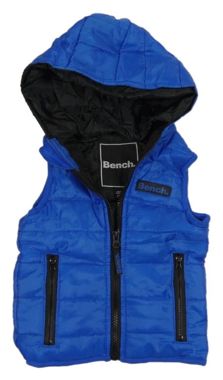 Modrá šušťáková zateplená vesta s nášivkou a kapucňou Bench