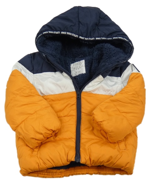Tmavomodro-bielo-oranžová šušťáková zimná bunda s kapucňou F&F