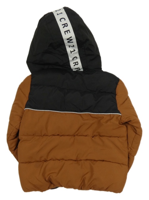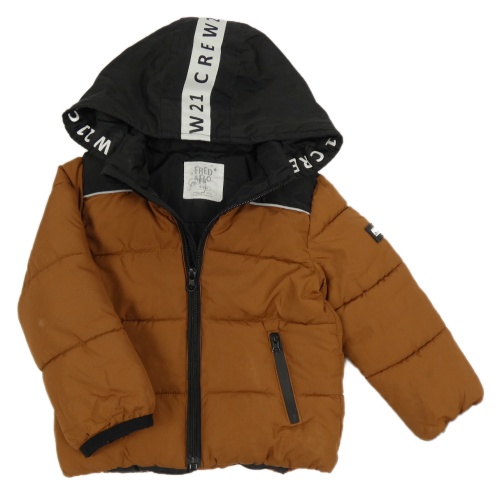 • Hnedo-čierna prešívaná šušťáková zimná bunda s nášivkou a kapucňou s nápisom F&F