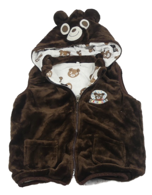 Hnedá chlpatá podšitá vesta s medvěďom a kapucňou