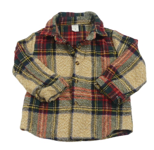 Okrovo-červeno-zelená kockovaná košeľová bunda Shein