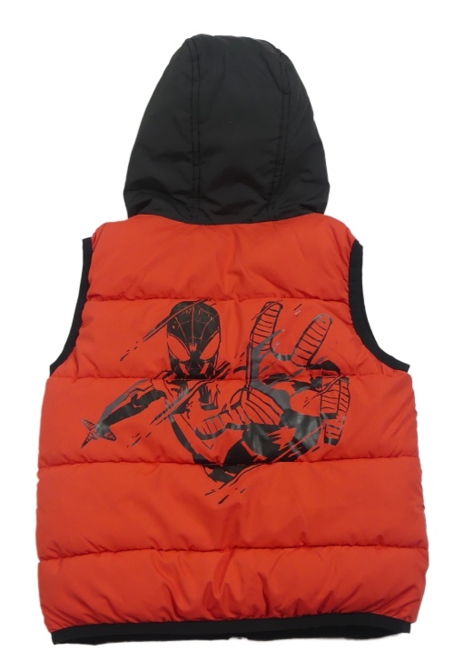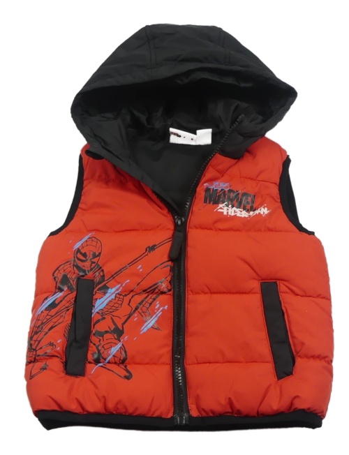 Červeno-čierna šušťáková zateplená vesta so Spidermanem a kapucňou Marvel