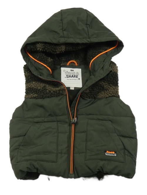 • Tmavokhaki-army kockovaná šusťákovo/huňatá zateplená vesta s nášivkou a kapucňou F&F