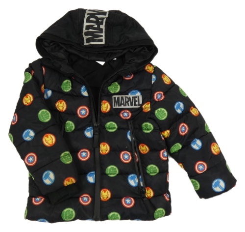 Čierno-farebná šušťáková zimná bunda s Marvel a kapucňou Marvel