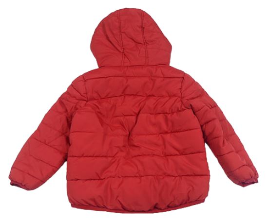 Červená šušťáková zimná bunda s nápisom a kapucňou Tu