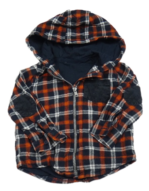 Tmavomodro-oranžovo-biela kockovaná podšitá bunda s kapucňou Matalan
