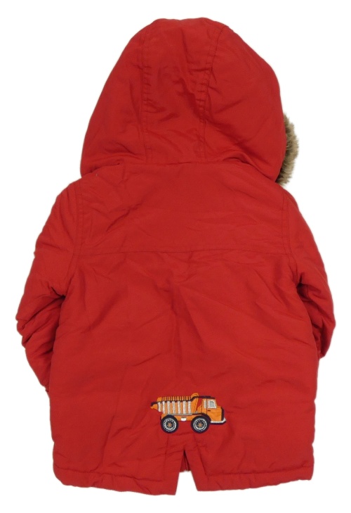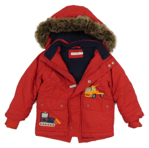 Červená šušťáková zimná bunda s hasiči a kapucňou Bluezoo