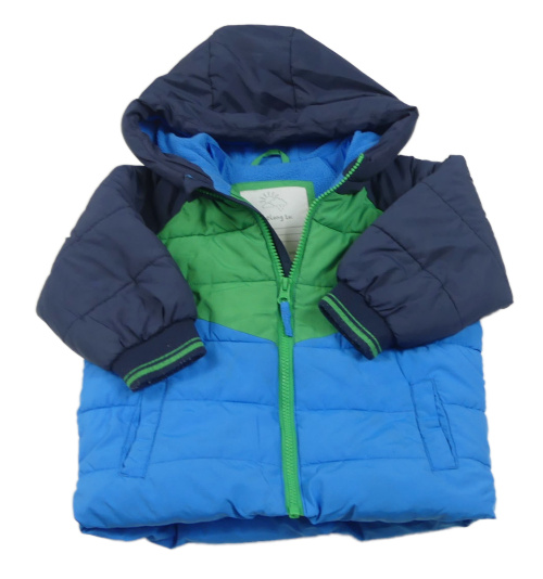 Tmavomodro-zeleno-modrá prešívaná šušťáková zimná bunda s kapucňou Tu