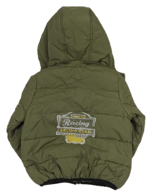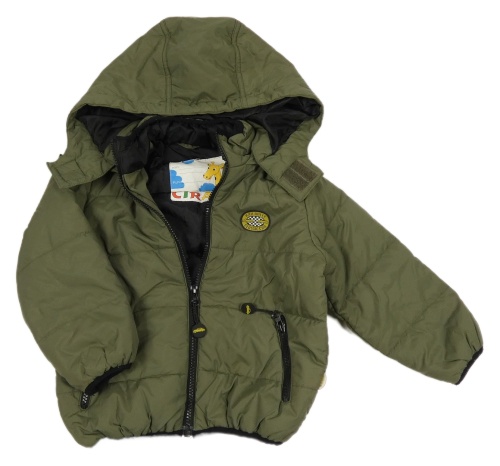 Khaki šušťáková zateplená bunda s nápismi a kapucňou