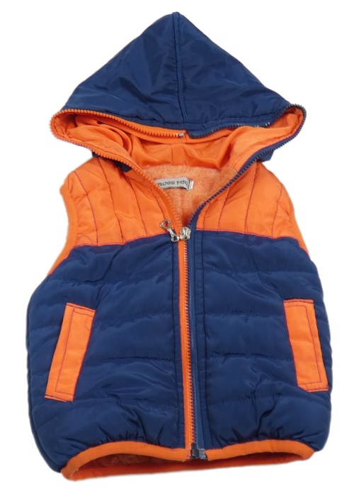 Tmavomodro-korálová šušťáková zateplená vesta s kapucňou