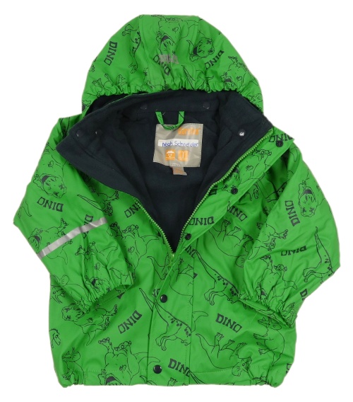 Zelená nepromokavá jesenná bunda s dinosaurami a odopínacíá kapucňou Caretec