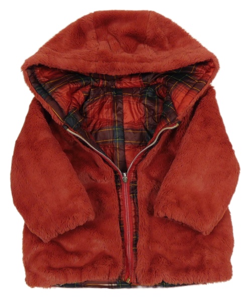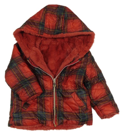 • Červeno-čierno-modrá kockovaná šušťáková zimná obojstranná bunda s kapucňou
