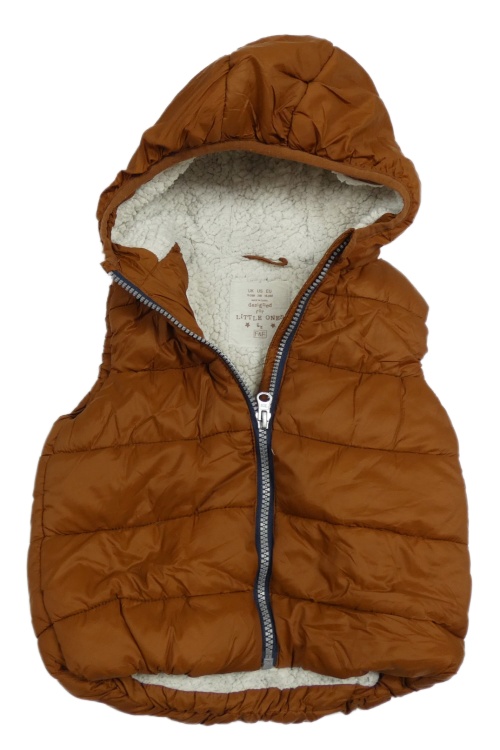 Hnedá prešívaná šušťáková zateplená vesta s kapucňou F&F