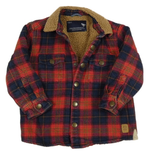 Tmavomodro-červená kockovaná košeľová zateplená bunda Next