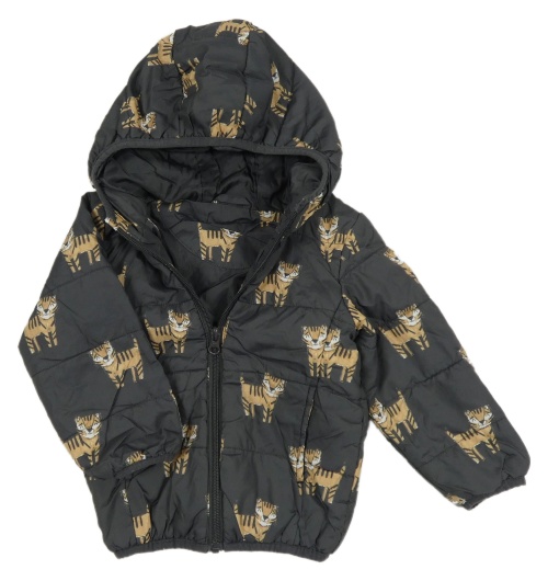 Tmavosivá prešívaná šušťáková zateplená bunda s tigrami a kapucňou George