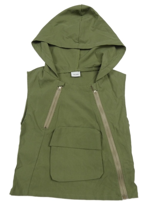 Khaki ľahká šušťáková vesta s vreckom a kapucňou