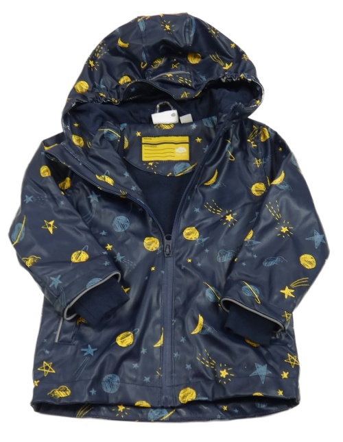 • Tmavomodrá nepromokavá jarná bunda s planetami a mesiacmi a obláčikmi a kapucňou impidimpi
