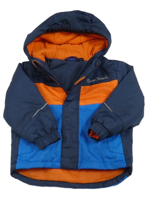 Tmavomodro-oranžová šušťáková zimná bunda s nápisom a kapucňou Lupilu
