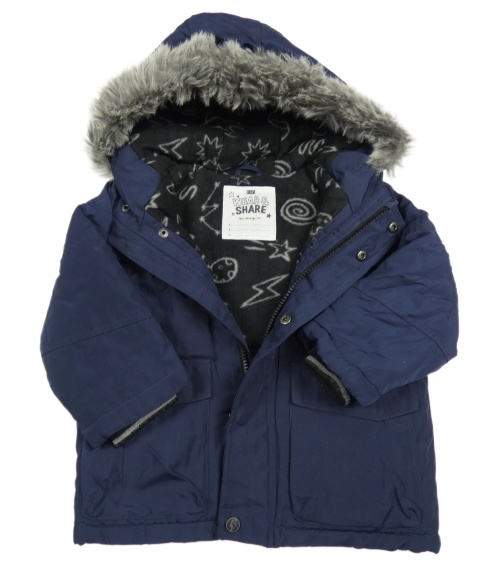 Tmavomodrá šušťáková zateplená bunda s kapucňou s kožešinou F&F