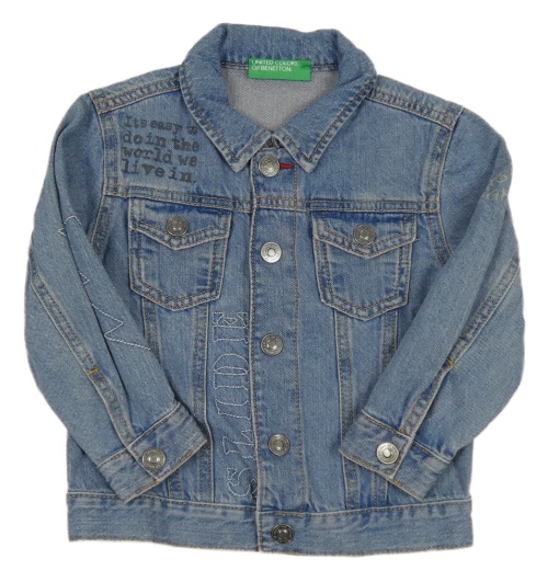 Svetlomodrá rifľová bunda s nápismi Benetton