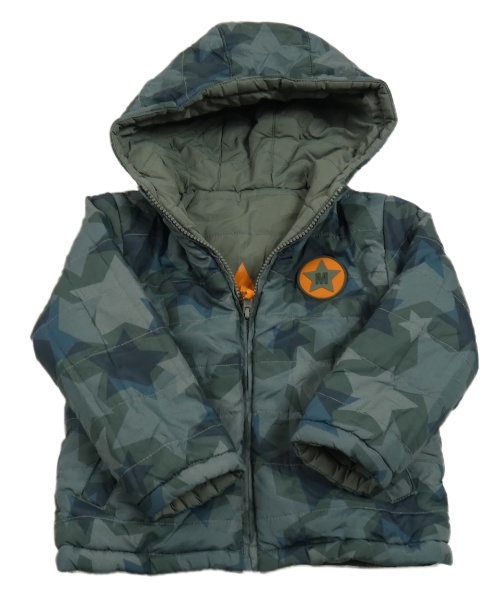 Sivá šušťáková prešívaná zateplená obojstranná bunda s kapucňou