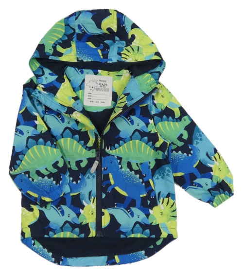 Tmavomodrá šušťáková jarná bunda s dinosaurami a kapucňou Nutmeg
