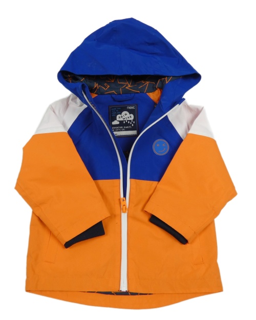 • Oranžovo-bielo-zafírová šušťáková jarná bunda s nášivkou so smajlíkom a kapucňou Next
