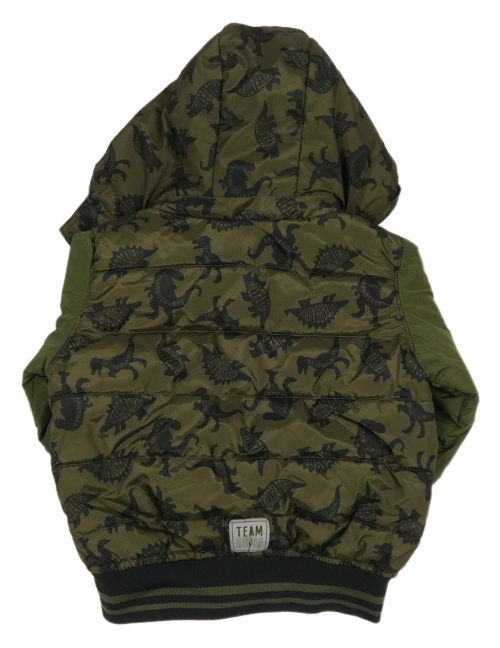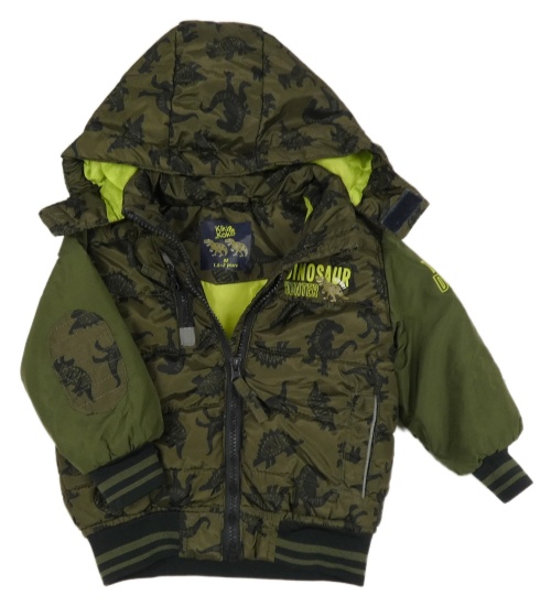 Khaki šušťáková zateplená bunda s dinosaurami a kapucňou Kiki&Koko