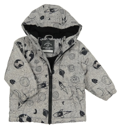 Sivá melírovaná šušťáková zimná bunda s obrázkami a kapucňou George
