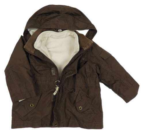 • 3v1 - Hnedá šušťáková celoroční funkčná bunda s kapucí + béžová fleecová mikina Quechua