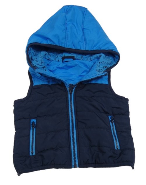 Tmavomodro-modrá šušťáková zateplená vesta s kapucňou Impidimpi