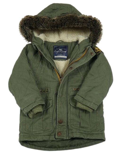 Khaki plátenná zateplená bunda s nášivkou a kapucňou George