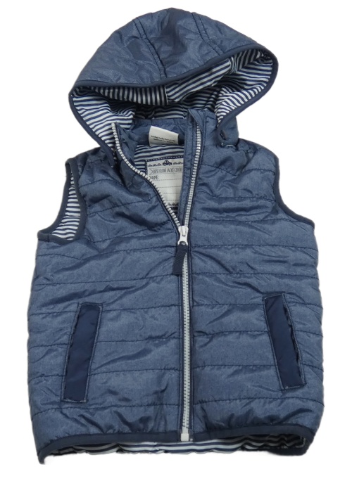 Tmavomodrá melírovaná šušťáková zateplená vesta s kapucňou Topomini
