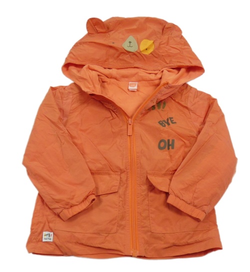 Oranžová šušťáková jesenná bunda s kapucňou s medvěďom