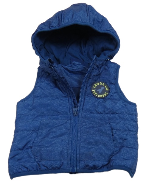 • Tmavomodrá vzorovaná šušťáková zateplená vesta s nášivkou a kapucňou Impidimpi