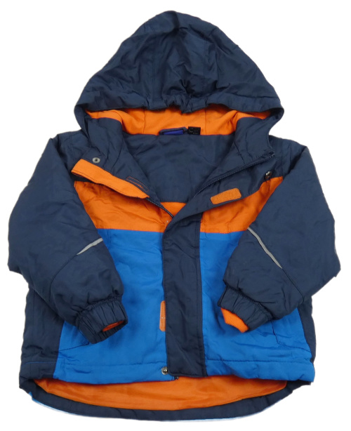 Tmavomodro-oranžovo-modrá šušťáková zimná lyžiarska bunda s kapucňou lupilu