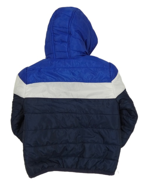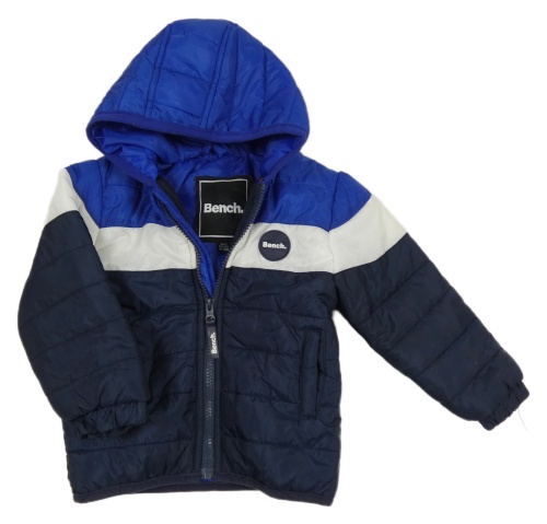 Tmavomodro-bielo-modrá šušťáková prešívaná zimná bunda s kapucňou Bench
