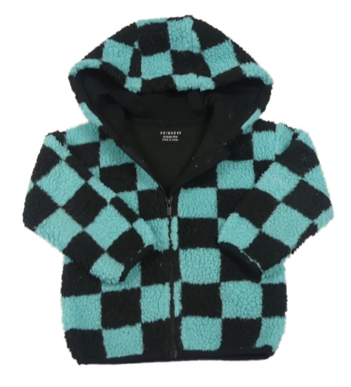 Světletyrkysovo-čierna kockovaná huňatá bunda s kapucňou PRIMARK