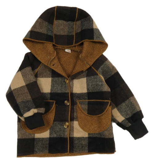 Hnědo-černý kostkovaný zateplený kabátek s kapucňou