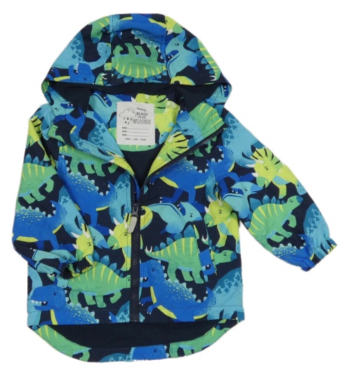 Tmavomodrá šušťáková jarná bunda s dinosaurami a kapucňou Nutmeg