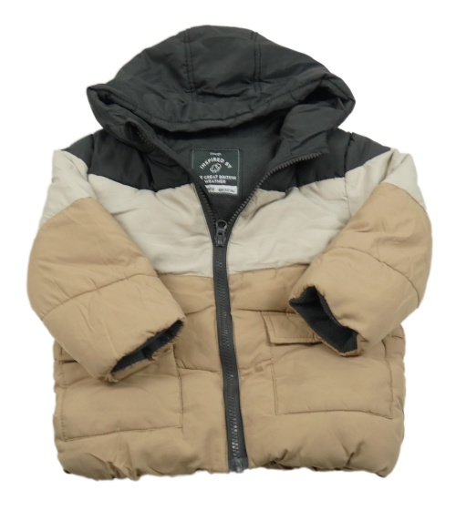 Béžovohnědo-světlebéžovo-čiernošedá prešívaná šušťáková zimná bunda s kapucňou George
