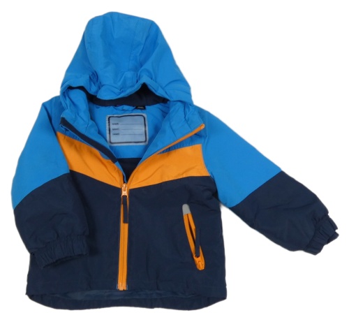 Modro-oranžovo-tmavomodrá šušťáková zimná bunda s kapucňou Lupilu