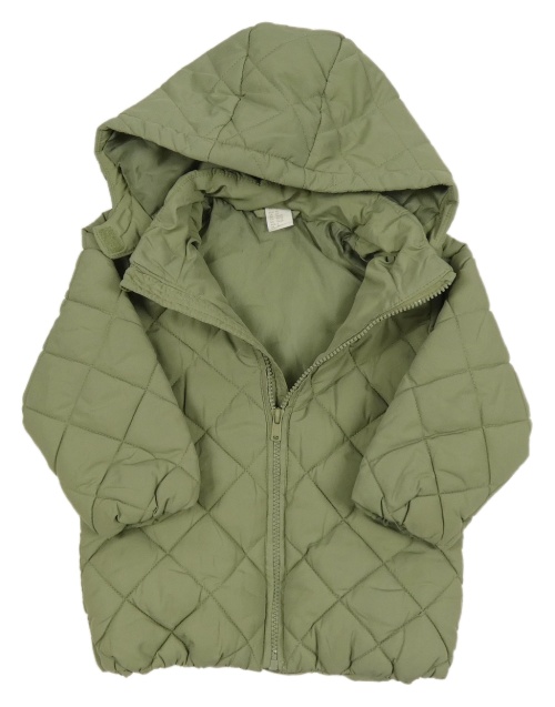 Zelenošedá prešívaná šušťáková zateplená bunda s kapucňou H&M