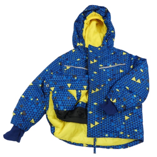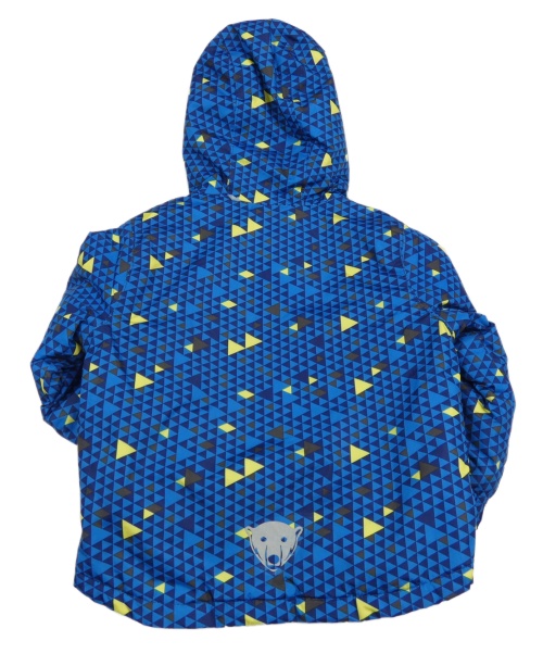 Modro-tmavomodro-žltá vzorovaná šušťáková zimná bunda s kapucňou Lupilu