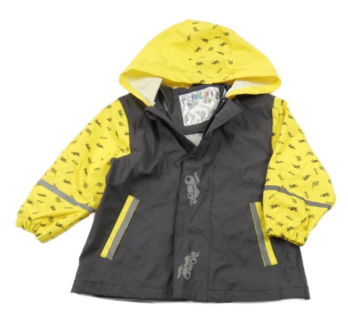Sivo-žltá nepromokavá bunda s formulami a kapucňou Lupilu